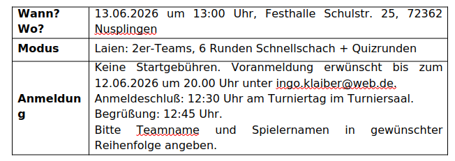 Wir freuen uns, möglichst viele Schachfreund:innen in Nusplingen begrüßen zu dürfen 🙂